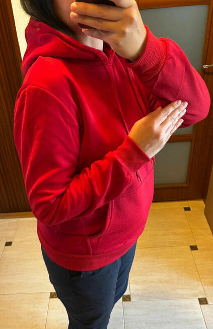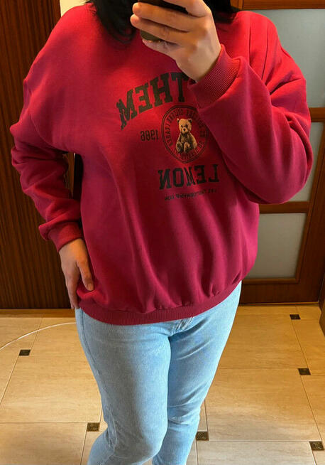nowa, ciepła, miękka bluza z misiem na przodzie w intensywnym czerwonym kolorze. Wykonana w 100% z bawełny, z ocieplanym ...