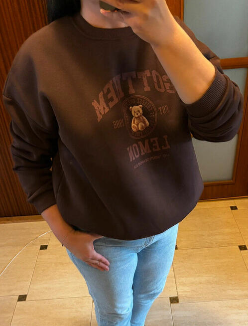 Nowa, Ciepła Bluza Oversize z Misiem – Kolor Gorzka Czekolada Styl, wygoda i przytulność w jednym! Ta miękka, ...