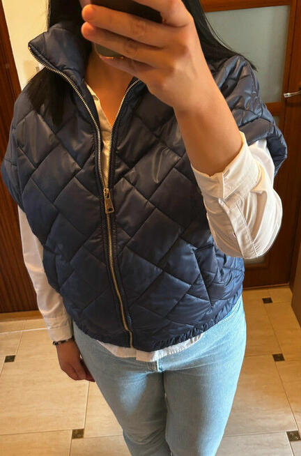 Damska kamizelka przejściowa w kolorze czarnym. Nowa, włoska produkcja. Wysoka stójka dodaje charakteru. Rozmiar ...